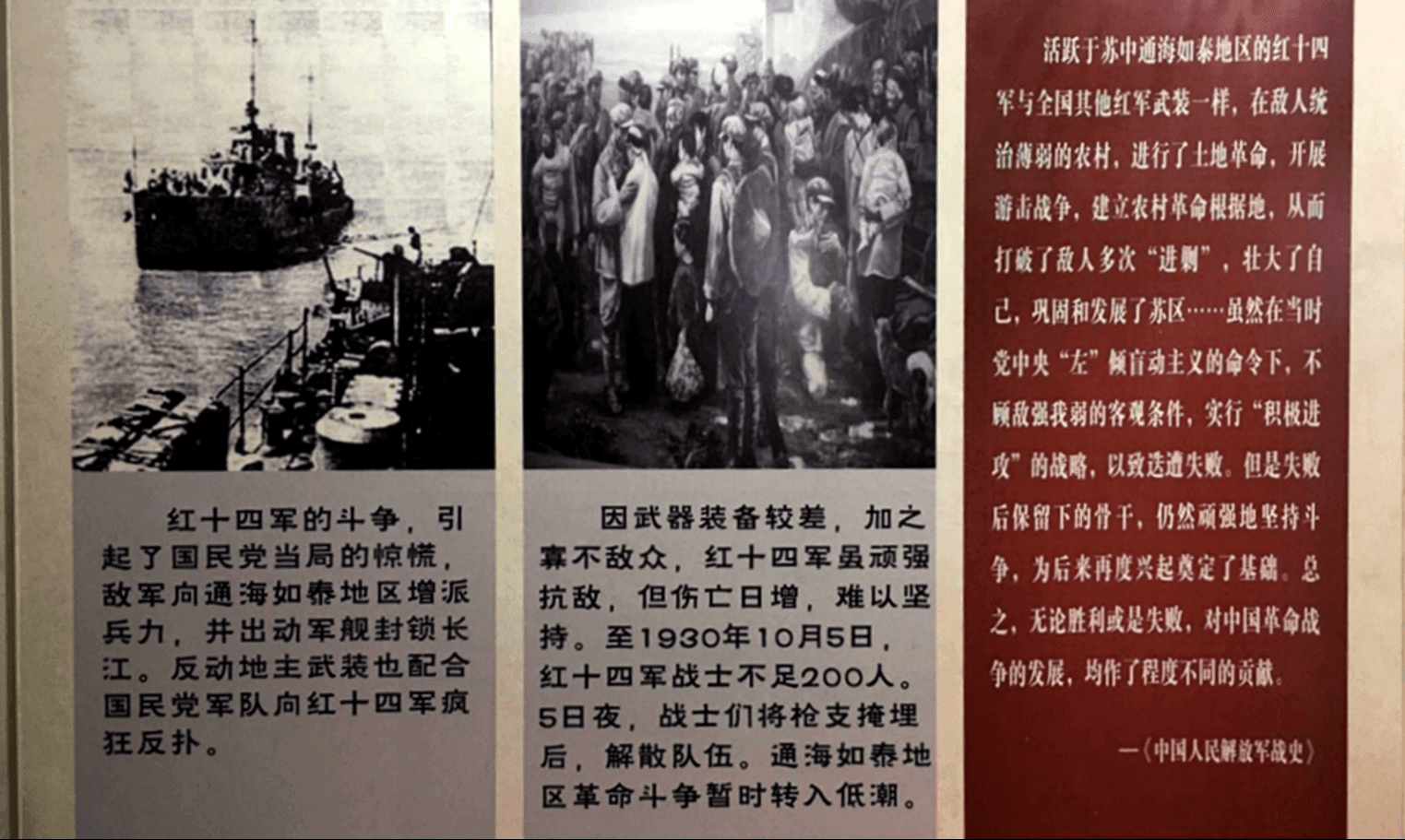 整编后的如泰红军战斗力大大加强,多次取得战斗的胜利。1930年1月11日,如泰红军进攻搬经镇,焚毁卢港区公安分局、区公所、国民党区分部、县警队第二中队部等处房屋。1月18日,薛衡竞率红军冒着鹅毛大雪夜袭顾高庄据点,战斗不到一小时就胜利结束,俘敌40余人,缴步枪38支,手提式机关枪3支,小炮1门。在那风雨如磐的年代,星星之火,必将燃起燎原之势。1930年4月,中国工农红军第十四军正式建立。