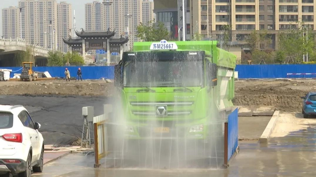 据了解,项目建设单位采用了20辆这种新型运输车,在装车结束后,还要进入冲洗平台,通过喷淋系统,对整个车身进行冲洗,防止把泥土带出工地。