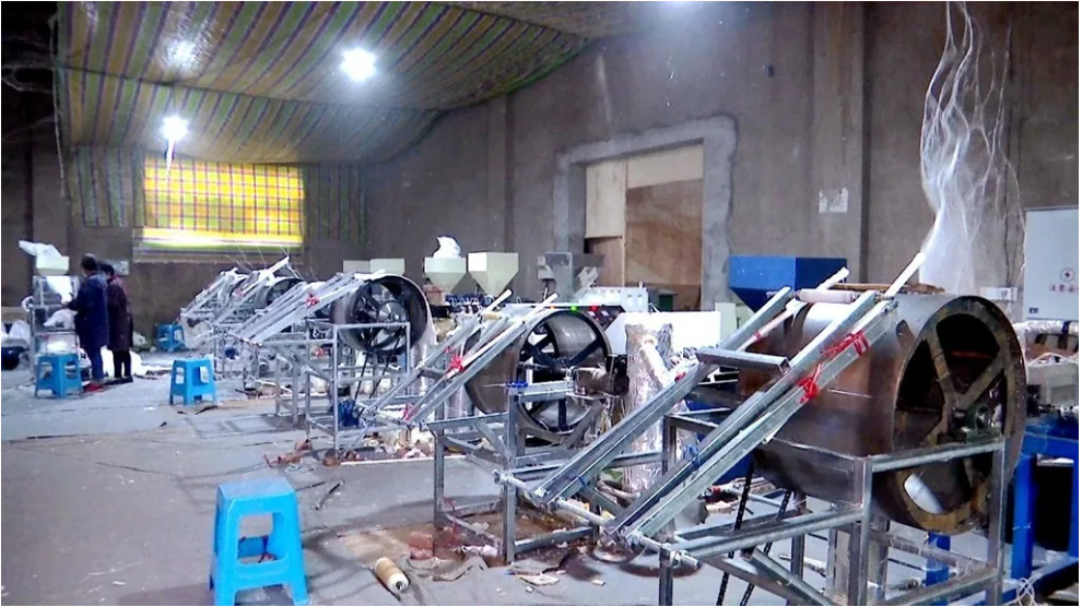泰兴市元马线路边的一处废弃厂房内,十几台机器正在等待关停,该作坊4月20日开始生产,到目前为止已经生产了900公斤左右的熔喷布成品,销售出去近600公斤。这样的小作坊大多设立在临时租赁的废旧厂房内,不仅生产出来的熔喷布达不到产品质量标准要求,消防隐患、环境污染等问题也无法得到有效控制。