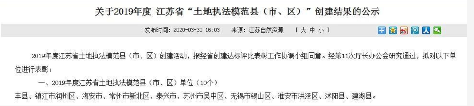 日前,泰兴市获评2019年度江苏省“土地执法模范县(市、区)”,为泰州地区唯一获此殊荣的市(区)。