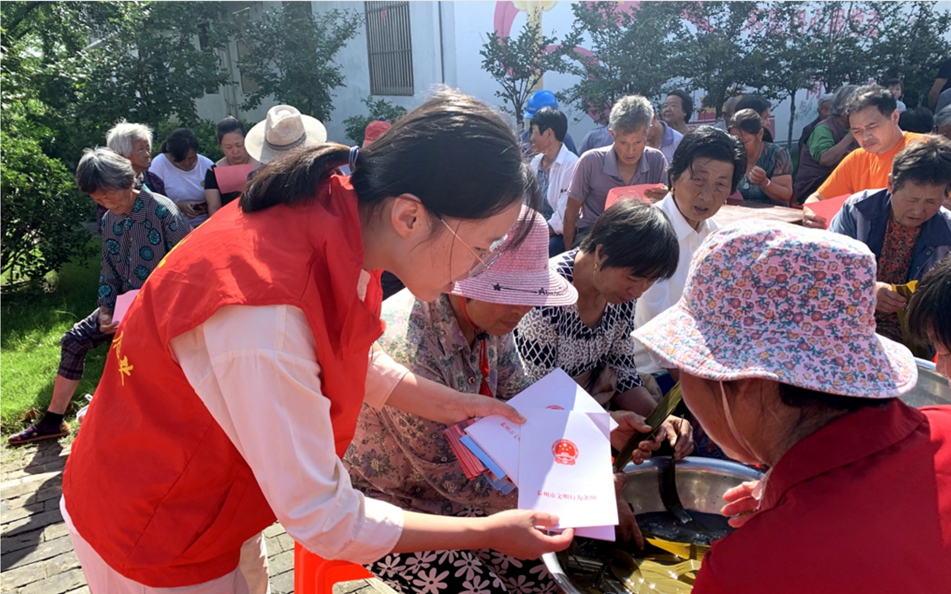 光芒四射,群参众议扩影响。在“一米阳光”志愿服务的感染下,更多的市民自发加入,成立起“百姓志愿小分队”:新港村“环保护卫小先锋队”;根思村硬核“老年突击队”;南湖村“百姓名嘴粉丝团”走进田间村口,当起理论宣讲志愿者,现场开办“板凳会”;李秀河村组织群众代表定期座谈。阳光灿烂,志愿飘红,根思大地悄然掀起了“有困难找志愿者,有时间做志愿者,人人都是志愿者”的新潮流。