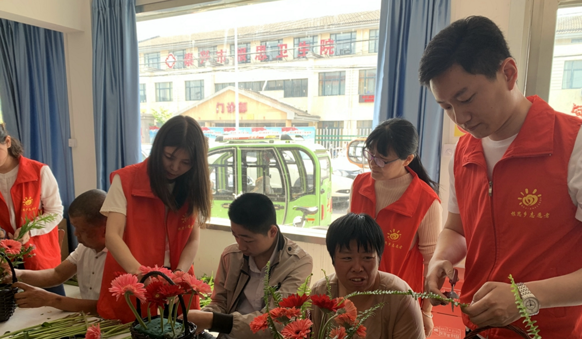 光线交汇,合作融合展新意。根思乡“一米阳光”志愿组织吸纳专业能人,各职能科室和条线联动合作,致力开展精准丰富、有效规范的服务项目。“普法+就业扶贫”。井坔村文明实践志愿队扶“智”与扶“志”结合,联合乡工业集聚区和泰兴市农副产品批发市场,开设就业创业服务项目,3家个体工商户成功创业,20余人参加工作,为省文明村再添经济活力。“助残+心理疏导”。5月20日,乡残疾人之家举办了主题活动,残疾人朋友们共同制作爱心花篮,亲手赠送给关心爱护自己的志愿者和抗“疫”一线的乡卫生院医护人员。
