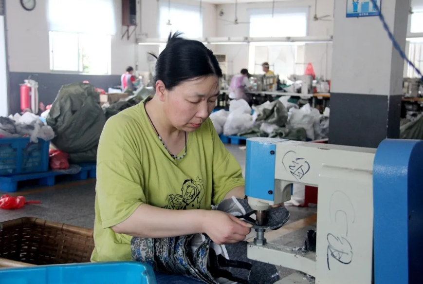 村集体经营性收入由2016年的10万元到2019年的55万元,4年增长5倍。农民年人均可支配收入,由2016年的16692万元到2019年的27996元,4年增长近70%。宣堡镇梅埝村正用革故鼎新、一往无前的干劲,实现全村2015名村民共同富裕的梦想。现场一:泰兴市金艺鞋业有限公司
