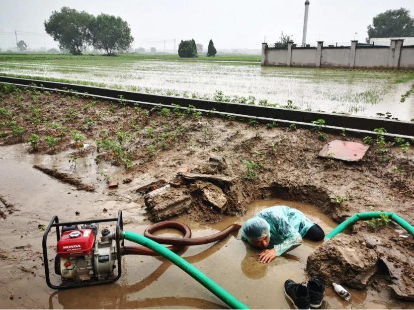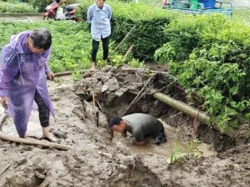 近日的大暴雨等恶劣天气使水稻田正常排水受到影响。在泰兴市曲霞镇镇西村陈公堂3组,随着雨越下越大,稻田里的水位以肉眼可见的速度上涨,村后备干部赵磊二话不说,鞋子一脱就跳入了出水坑管道,抓住水泵管道细细排查堵塞原因。泡在水里1个小时之后,他终于把管道内的堵塞垃圾、石块全部取出,农田排水恢复正常,及时保护了地里的庄稼。 赵磊是村里的入党积极分子,他说:“汛情是对我们的一次考验,群众有需要,我就冲在前!”
