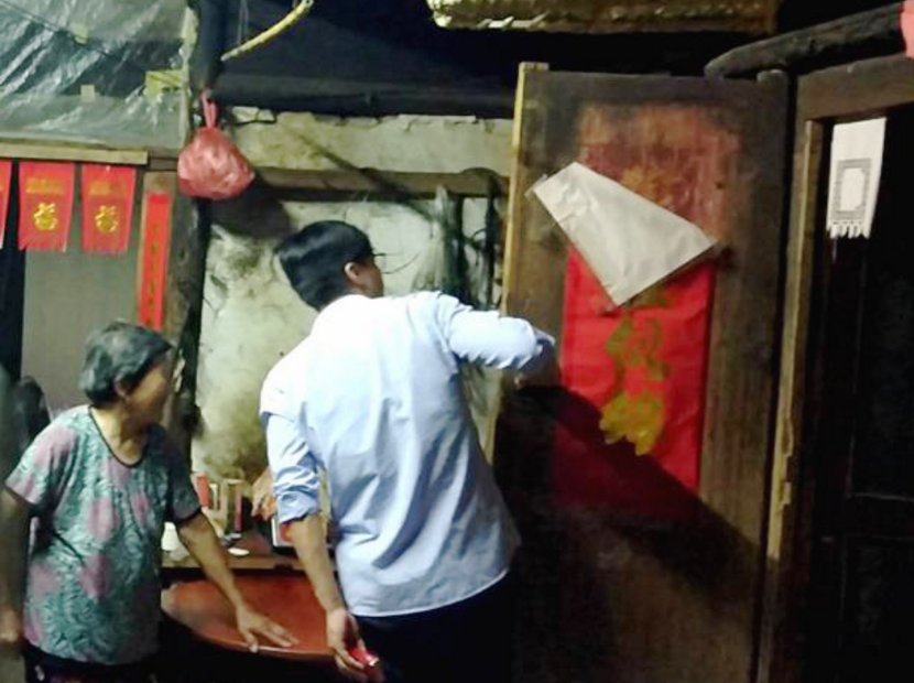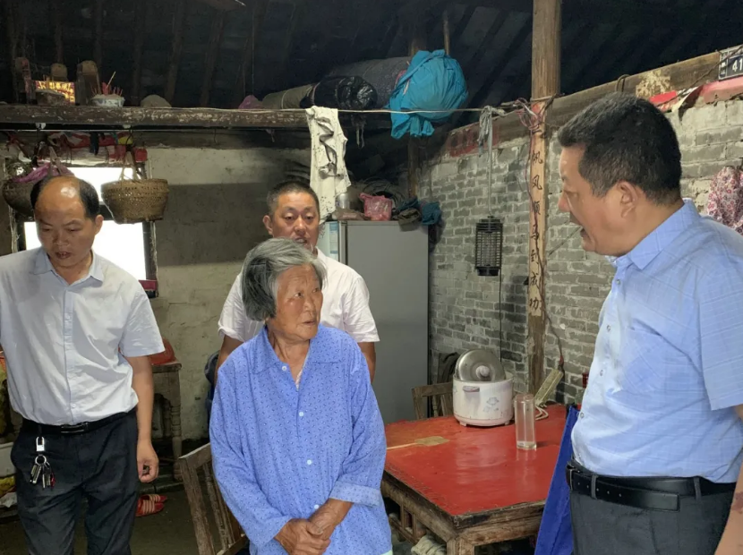 87岁的泰兴市张桥镇杨庄村村民朱文志和老伴一直住在有百余年历史的老祖屋里,因为对祖屋感情深厚,老人迟迟不愿搬离。汛期来临,由于不放心两位老人的安全,村党总支书记、“第一书记”蔡卫明,村党总支副书记朱锴带领村干部多次上门做工作,劝其到子女家居住。在征得老夫妻俩同意后,他们第一时间带领村干部帮助老两口搬离危房。