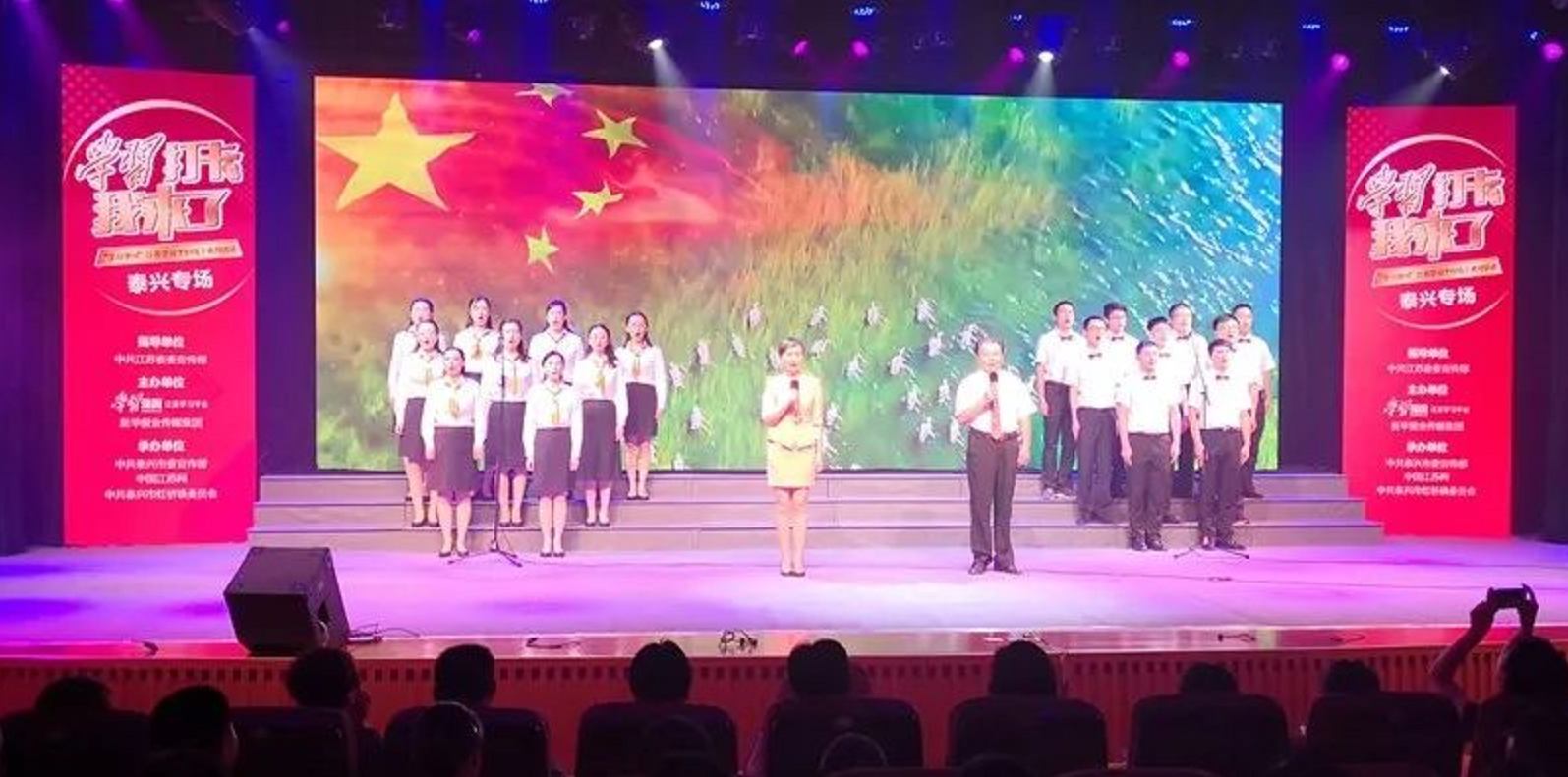 上强国、勤学习,已成为泰兴市党员的新风尚、新常态。目前全市共有61600多名党员注册学习,覆盖率98.8%,用户活跃度达90%以上。从线上的自主学习延伸至线下的火热竞答,本次活动还设置了观众互动问答环节,8道题目的抢答,检验现场观众对生态文明思想的学习效果,充分激发出大家的学习热情,掀起“学习强国”学习热潮。