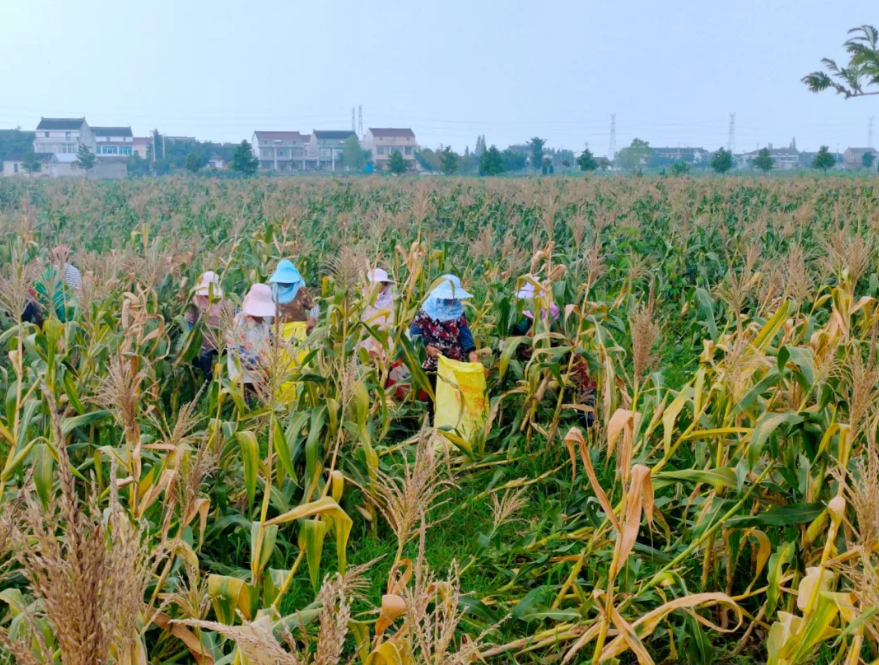 在做优传统产品的基础上,管凤村更注重新品的开发。 日前,在管凤村玉米种植基地上,村民们正在采收玉米。连日来天气忽晴忽雨,玉米采收工作只能在雨后间隙开展。