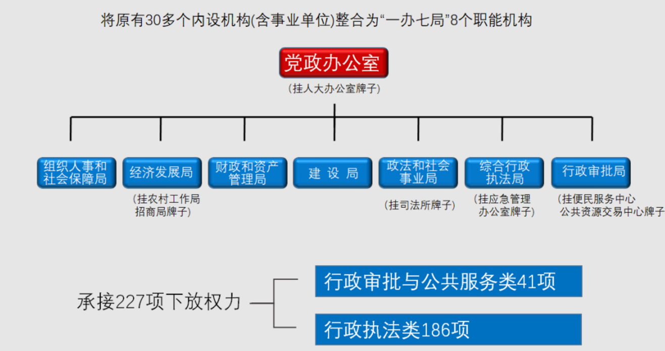 据了解,泰兴市《实施方案》明确了7个方面23项工作任务,以加强党的全面领导为统领,充分发挥乡镇(街道)党(工)委领导作用。突出强调健全党的组织体系,在乡镇(街道)职能机构挂牌设立党建工作办公室,配备组织员。完善乡镇(街道)党(工)委运行机制,实行党建工作分工负责制,强化党建责任和任务“双清单”管理。突出政治功能,推动基层党委、支部、党员和群众四个主体联动共进。 《实施方案》提出,强化基层政务服务体系建设,实现审批服务一窗口。综合设置审批服务机构,实现“一口受理、一窗通办、集成服务”;相关部门设在乡镇(街道)的服务窗口和水电气等民生服务窗口全部进驻为民服务中心;建立专业化代办帮办服务队伍,选优配强骨干力量。优化政务服务流程,实行“马上办、网上办、就近办、一次办”,积极推进“不见面审批(服务)”改革。创新政务服务模式,建立健全乡镇(街道)、村(社区)两级联动的便民服务网络,推进同城通办的公安出入境、税务、公积金等民生服务类事项进驻黄桥等重点中心镇的便民服务平台,辐射周边乡镇。 推进基层综合行政执法体制改革,实现综合执法一队伍。统一组建综合行政执法机构,整合乡镇(街道)现有执法力量和资源,组建乡镇(街道)综合行政执法局,实现“一支队伍管执法”。强化综合行政执法能力建设,每个乡镇(街道)配备不少于4名具有行政执法资格的人员以及相应执法装备,并配备一定数量的执法辅助人员。探索综合行政执法新模式,对专业性较强、执法要求较高的执法行为,采取“镇(街)呼市应”的方式,由市相关部门配合乡镇(街道)开展执法工作。完善综合行政执法监管机制,规范执法程序和行为,推行执法全过程记录、行政执法公示、重大执法决定法制审核等制度。
