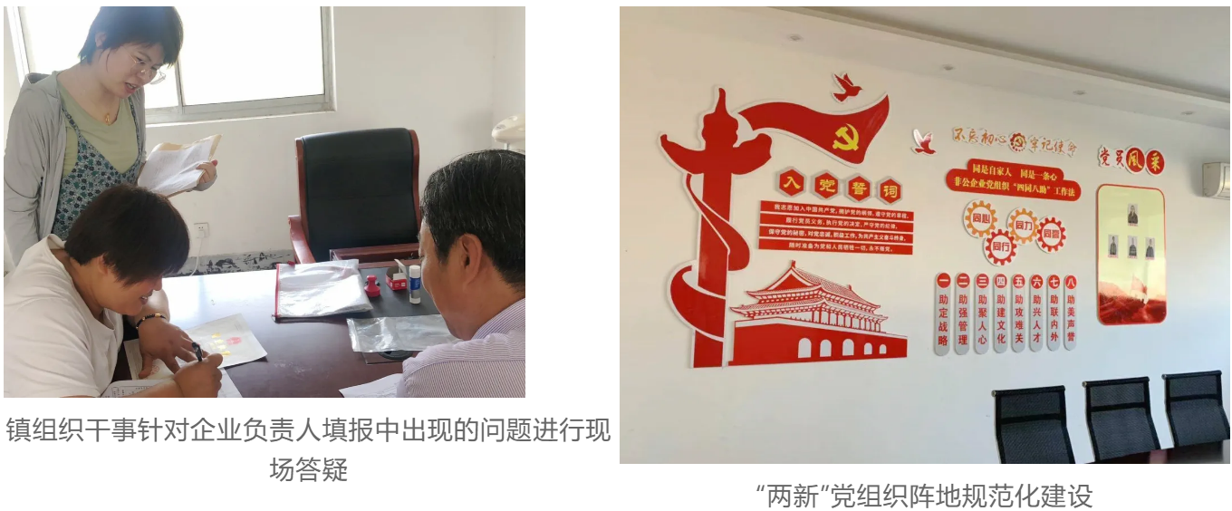 三方会商,确保摸排高质量 镇组织干事、村党务工作者、企业负责人汇聚一堂,针对企业负责人填报中遇到的问题进行现场答疑,讲解党支部工作条例和“两新”党组织书记基层党建工作责任清单。排查中坚持边摸排、边组建、边巩固,推动党组织应建尽建,同时加强“两新”组织规范化建设, 做到组织健全、制度完善、运行规范、作用明显,确保“建一个,活一个,用一个”。截至目前,新调整两个非公企业进入工业联合一支部