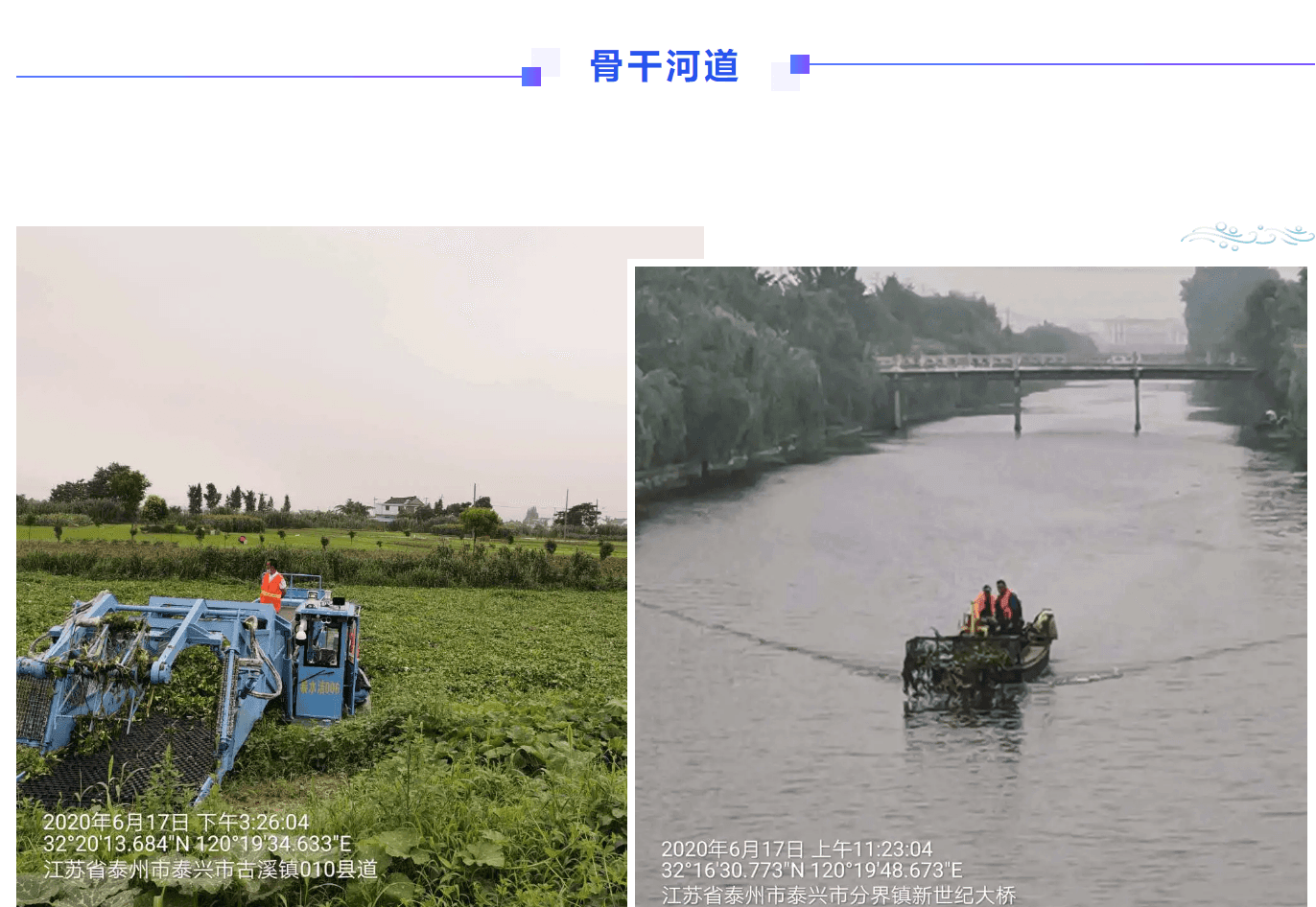 站在桥上,朝两边看去,南岸水面干干净净,北岸则被水生植物覆盖得严严实实。两条保洁船正在来回作业。 泰兴市奥体家政公司负责人朱家智介绍,他们2019年7月份进驻根思乡,近期进驻到河失镇,目前负责两个乡镇三十余条河道、八十多公里河面的管护。 泰兴市骨干河道从2016年开始引入市场化管护,2018年重新进行招标,14条骨干河道,358公里的河面,投入了十五条小型保洁船,六条自动化保洁船,进行常态化管护。 引入市场化,有了职业化队伍,有了专业化工具,管护成效看得见。