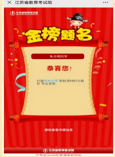 他虽听力有障碍,但丝毫不影响他追梦的脚步。多年来,他超越障碍、自强不息,努力去实现自己的梦想。今年,他以388分的成绩,被苏州大学新能源材料与器件专业录取,实现了211大学梦。他就是来自江苏省黄桥中学的准大学生朱炎明。