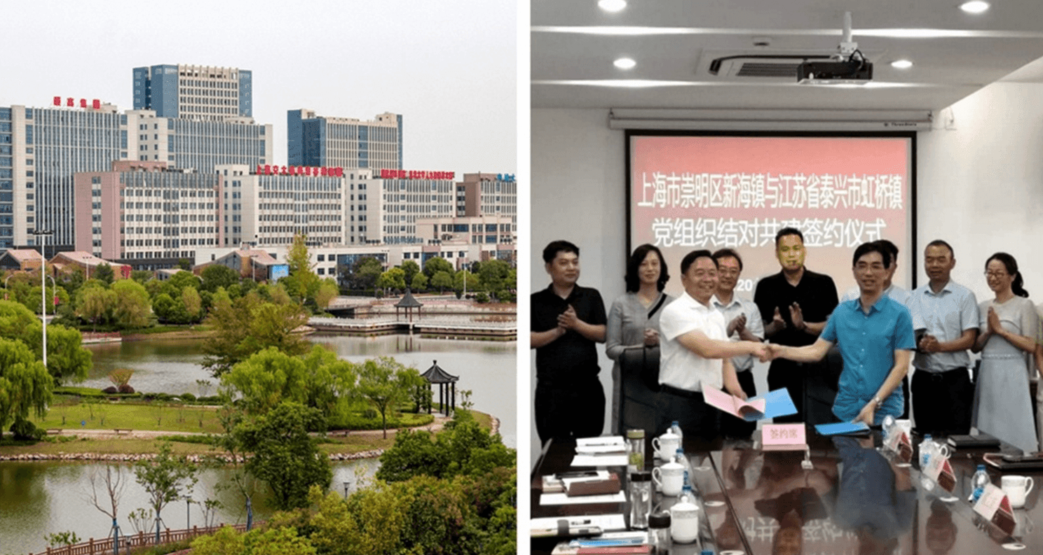 2020年6月,泰兴市虹桥镇党委与崇明区新海镇党委签署结对共建协议书,标志着跨省党建联盟正式启动。不仅委派年轻干部赴上海挂职锻炼,还通过驻点招商等方式,招引装备制造和现代农业项目。