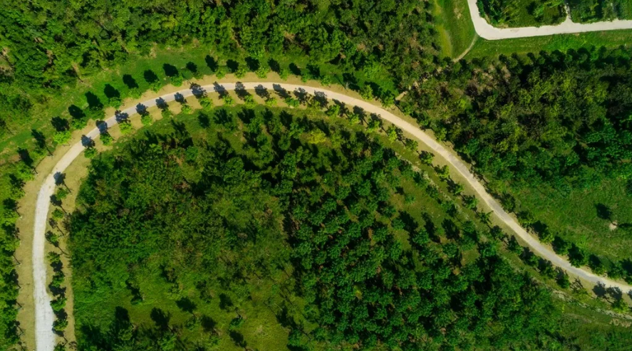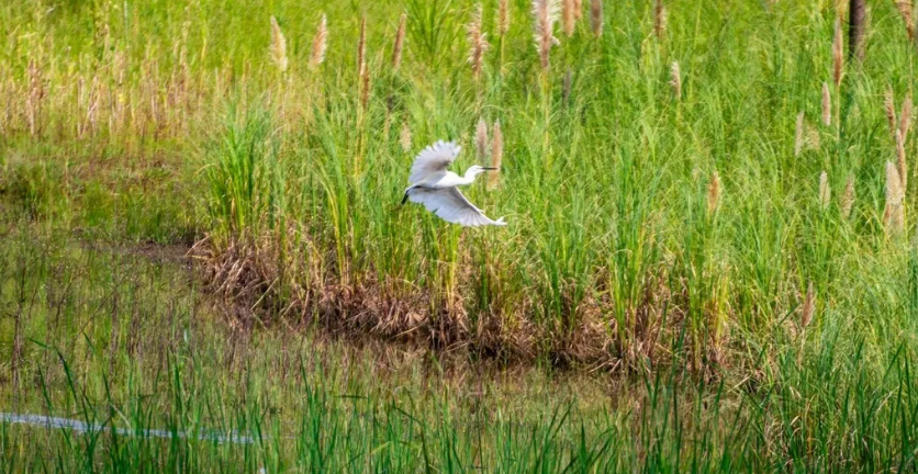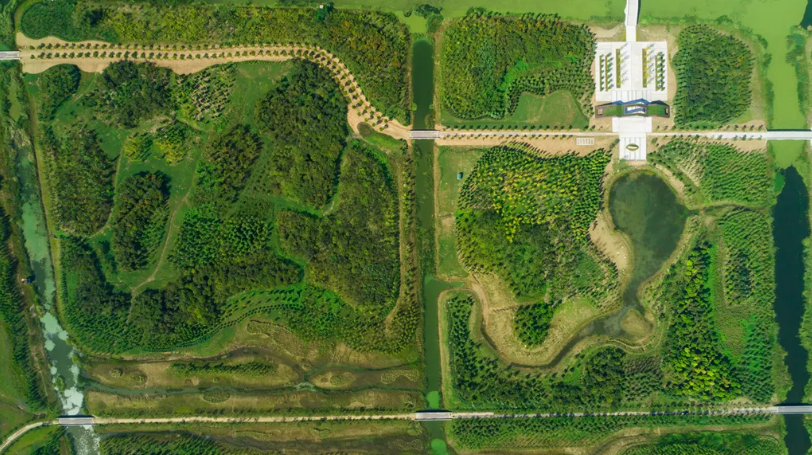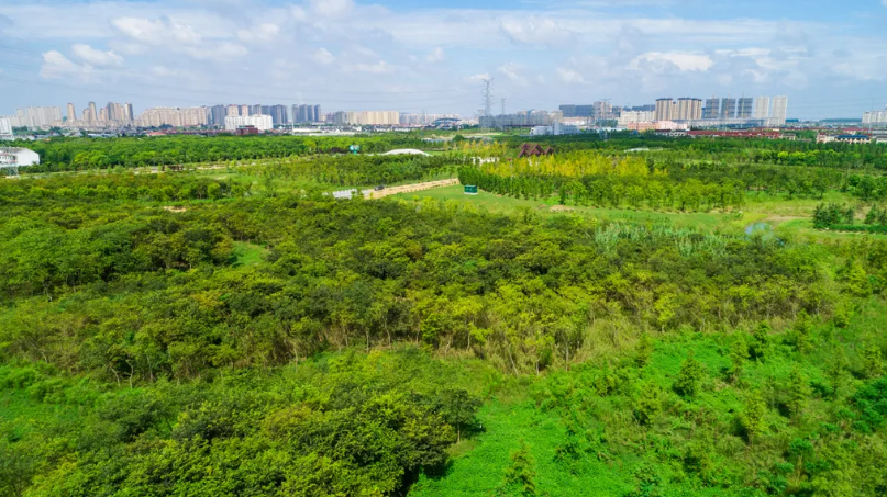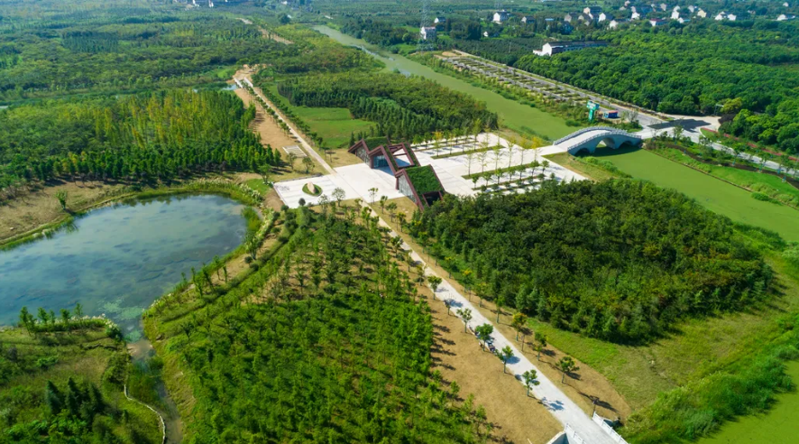 千荡育林区,大片的林木花海,注重生态效益和防护功能的同时,增加浆果类植物吸引鸟类筑巢,并将认养、景观、保健等功能融入种植中,以相对静态的休闲方式让游客在林间游赏中进行森林体验。