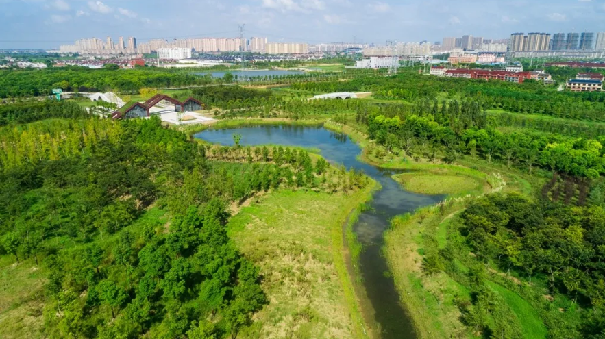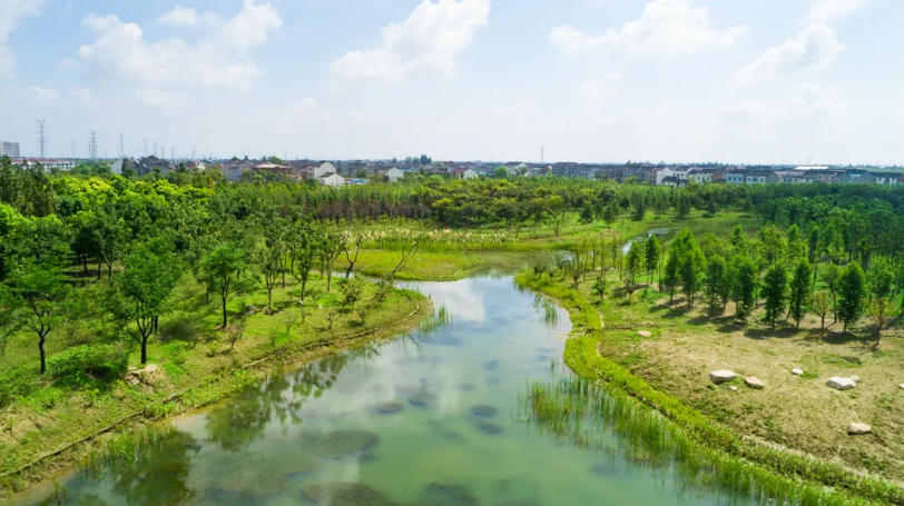 湿地景林区,主要有营造岛屿与有林湿地,种植水杉、落羽杉、湿地松等湿地生乔木,环境幽静,内设邻水栈道穿梭,具有良好的景观视野和较强的亲水性。