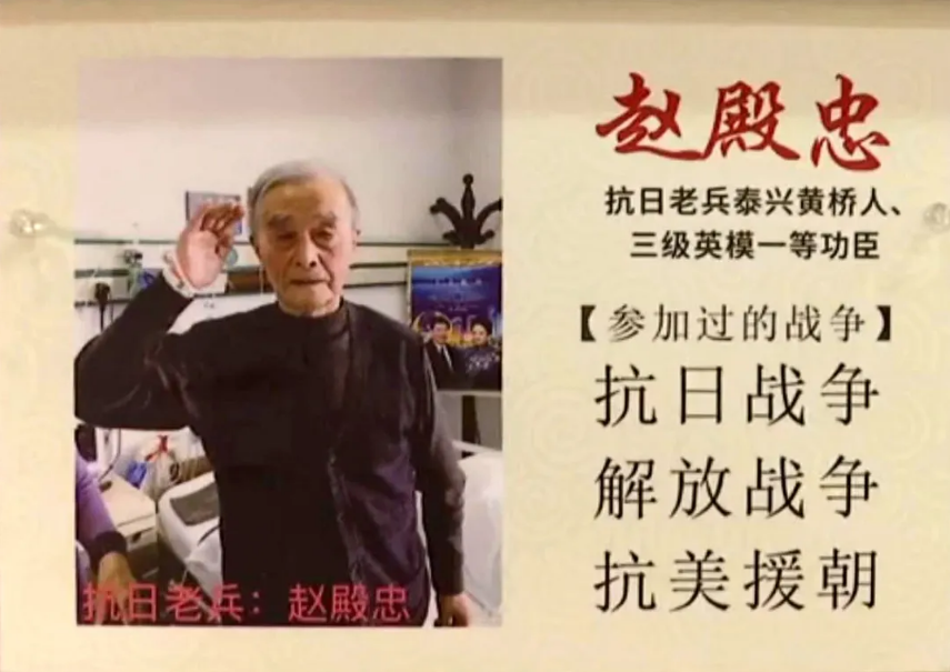 敌人的飞机向赵殿忠坚守的阵地整整轰炸了半个多小时,成吨的炮弹倾泻在山头上,整个阵地变成了一片火海。一直到12月28日下午两点,赵殿忠和战士们打退了敌人5次疯狂的反扑,全连最后只剩下5人。 在这片刚刚恶战过的焦土上,在冰天雪地里,赵殿忠所在连的150多位战士永远地躺下了,他们在激战中、在寒冷和饥饿中死去。 打退敌人5次反扑后,赵殿忠带领仅存的4名战士从阵地上撤了下来。杨根思担任连长的三连奉命坚守小高岭阵地。杨根思带领战士打退了敌人一次又一次进攻,直到打完最后一颗子弹,面对冲上来的40多名敌人,杨根思抱起一包5公斤重的炸药包,拉响了导火线向敌人冲去,与敌人同归于尽,壮烈牺牲。 因为在这次战斗中,赵殿忠和杨根思的顽强战斗,从而赢得了时间,保证了大部队的总攻胜利。赵殿忠在回国后,被授予“三级战斗英雄”称号,他所在的连被授予“一等功臣连”。 从地主家逃出,到泰兴独立团当通讯员 赵殿忠1925年出生在江苏省泰兴市黄桥镇北边申家庄的一个贫苦农民家庭。 1944年秋,新四军来到黄桥北边的农村进行休整,一连住了好几天。赵殿忠非常佩服新四军,便产生了参加新四军的念头。 1945年1月,他偷偷地从地主家逃出来,到泰兴独立团反攻营当通讯员。1945年11月,苏中教导旅三团被编为新四军一纵队二旅六团,他仍然在营部当通信员,先后参加了攻占如皋、解放兴化、突破姜堰等战斗。 有一次,赵殿忠所在的营担任穿插任务,进入到敌人的防区,与敌人展开了激战。为选准突破口,冲开敌人的封锁线,营长叫他去侦察地形。赵殿忠受领任务后,立即利用地形地物隐蔽前进,及时找到当地群众和地下工作者,了解敌人火力分布情况,迅速绘制了地形图。在往回赶在通过敌人封锁线时,不幸中弹负伤。他强忍疼痛,拼命往营部跑,及时将敌情交给营首长,营长及时调整战斗部署。他简单包扎伤口后,又将作战命令送到各个战斗分队。战斗结束后,营部给他记了四等功。 1946年,赵殿忠所在的华中野战军从苏中调往山东,配合山东野战军共同抗击敌军。
