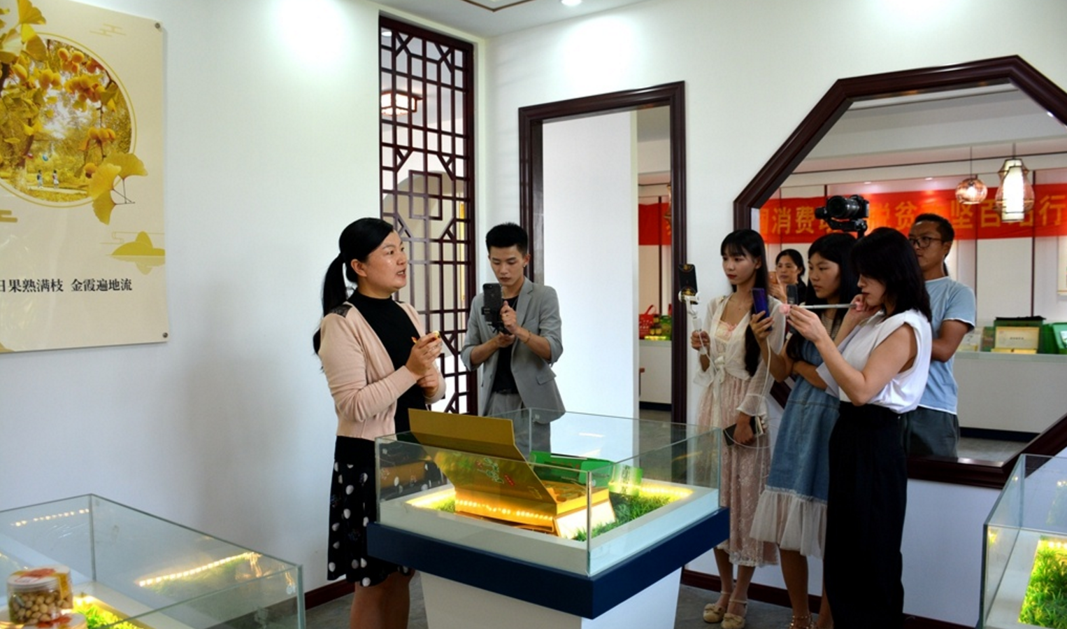 “亲们,想真正了解咱们的千年古镇宣堡吗?来吧,多彩宣堡,韶华正茂,欢迎广大朋友,‘森呼吸’,品白果,尝小馄饨,共享美丽中国行!”9月5日,江苏省泰兴市宣堡镇党委副书记侯志青对着主播们说,这是宣堡镇政企联手“直播带货”的一个镜头。