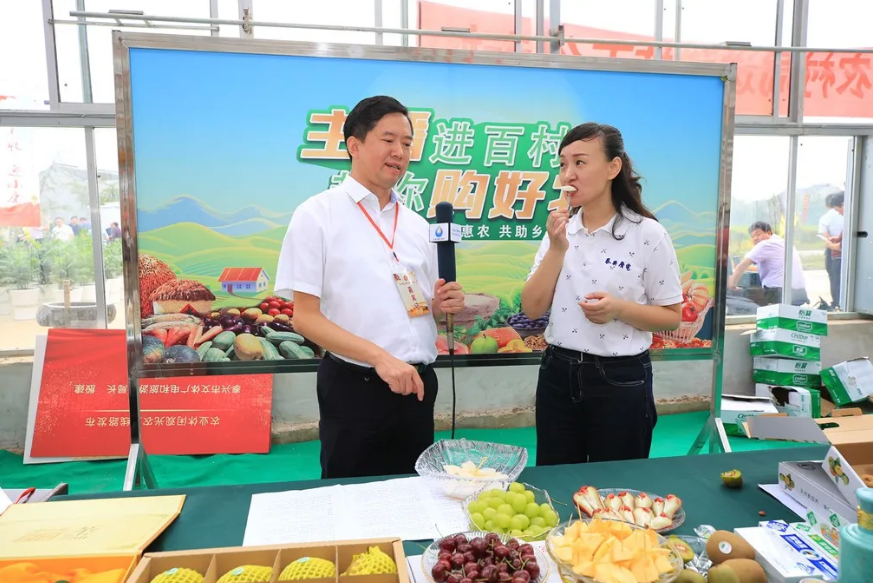 主播进百村,带你购好物 直播,是一种宣传手段,也是一种生活方式,通过直播叫响了泰兴特色农产品品牌,新鲜的蔬菜、水果通过物流走进千家万户。活动现场,滨江镇镇长黄峰为滨江农产品代言,面对直播镜头向广大网友喊出:“我家的农产品顶呱呱!”