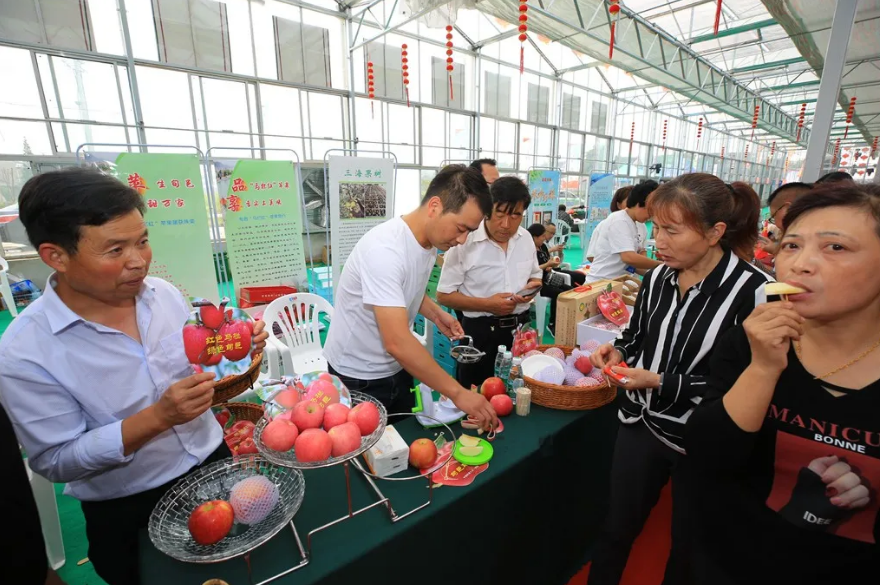 微博、一直播、抖音、花椒、小红书,数百万的粉丝,带来了巨大的人流量,数千平方米的玻璃大棚里,各展位前围满了市民,大家纷纷解囊购买。 特别引人注意的是,泰兴的兄弟城市——旬邑也来了,马栏红苹果在泰兴家喻户晓,诱人的色彩、清脆的口感、甜美的汁水,展示区前人们赞不绝口。