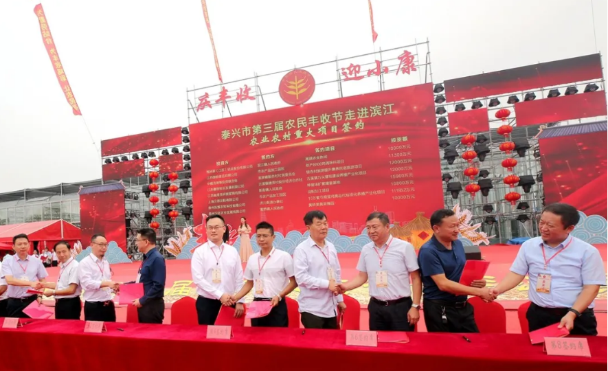 泰兴市把农业农村重大项目建设作为统筹推进疫情防控和经济社会发展的重大举措,围绕生猪保供、农业服务、人居环境改善等重点领域,用工业化理念开展“硬核招商”,扎实开展重大项目建设,有力提升了农业产业水平,促进农民增收。 农业招商项目信息发布、农业休闲观光农业线路发布、农业农村重大项目签约、万企联万村签约,一阵阵掌声、一片片欢笑……