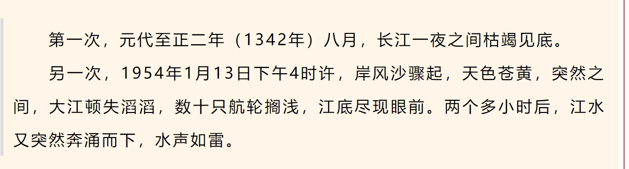 泰兴大地,因江而生;泰兴,江城也。长江位于泰兴西侧,因此长江泰兴段也被称为“西江”。据《泰兴县志》《高港区志》记载,西江曾出现过两次“断流”奇观。