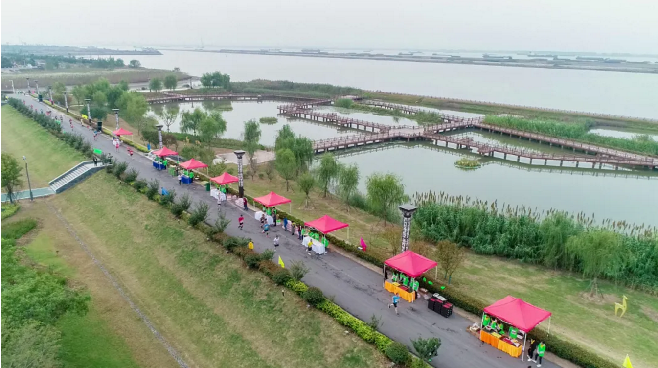 基地占地约23亩,建设了一墙一廊一平台,“一墙”就是生态警示墙,“一廊”是科普展示走廊,“一平台”是临江展望平台。目前,整个工程已建成开放,显露迷人风景。 5公里的江堤赛道上,景观桥、亲水平台,让人有一种“身在画中游”的感觉。这条美丽的生态廊道,也随着赛事进入国际视野。
