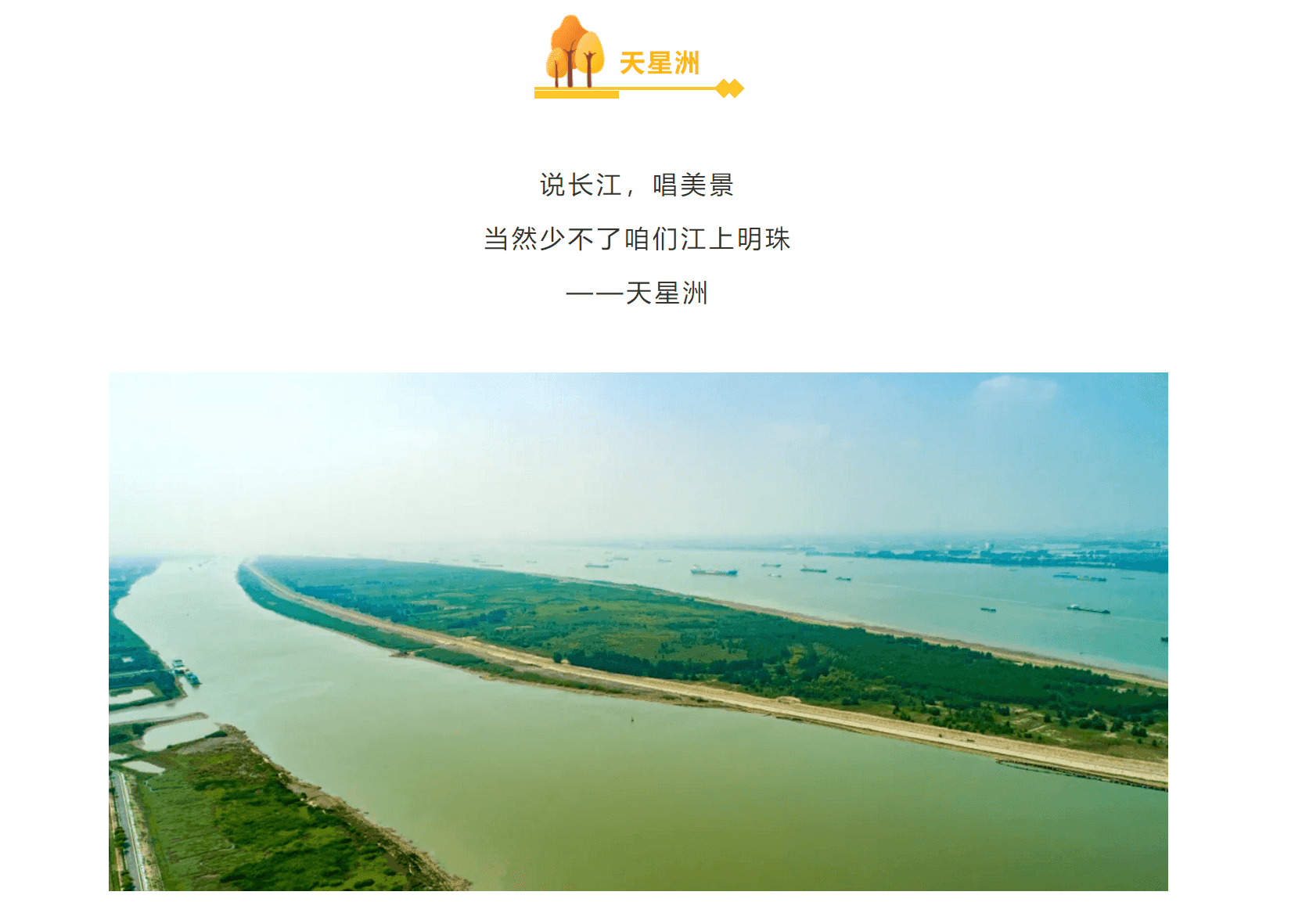 天星洲总面积约为8平方公里(12000亩)。 泰兴市原计划将天星洲建设成港口物流基地,项目从2008年启动,2012年获水利部长江委行政许可,2013年被省发改委确定为省首批重点投资项目。为提高长江岸线生态修复水平,我市及时调整规划思路,拟建江苏泰兴长江天星洲省级湿地公园。拟规划建设的湿地公园内湿地面积1076.04公顷,占湿地公园总面积的99.13%。今年8月25日,省林业局邀请有关专家组成专家组,一致同意通过了《江苏泰兴天星洲省级湿地公园总体规划(2020—2024)》,现正在按程序组织申报。
