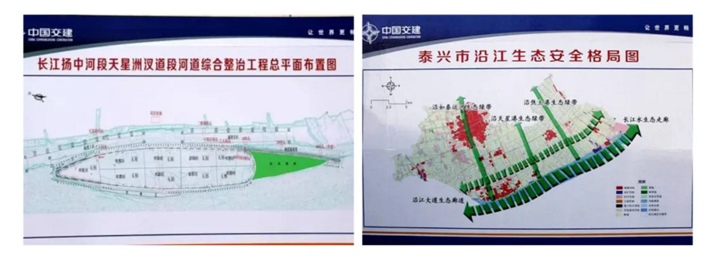 2018年5月,长江湿地和生态廊道工程开工建设,工程北起洋思港,南近六圩港,全长12公里,总绿化面积约280万平方米。按照“三地”(绿地、湿地、林地)共建、“三效”(生态效益、经济效益、社会效益)结合的要求,堤外退渔还湿,进行生态修复,与天星洲生态区形成呼应;堤顶按百年一遇防洪要求拓宽改造;堤内重点实施植树造林、沟通水系、增加小游园,为百姓服务,通过上述措施,着力形成“一带三区多点”大江风貌(一带,即12公里生态林带;三区,即生态产业融合区、生态田园风光区、生态人文体验区;多点,即重要节点的点缀)。
