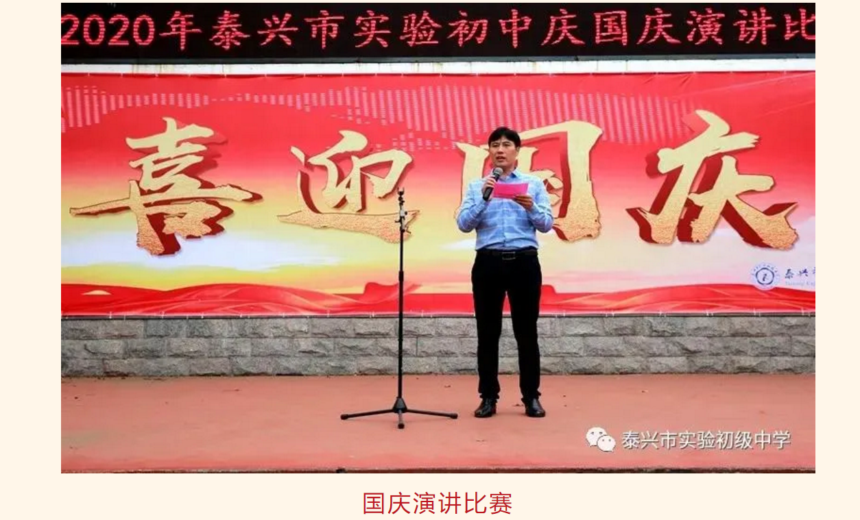 学校篇 实验初级中学 全校师生用升国旗、唱红歌、上党课、演讲比赛和国旗合影等活动,讴歌伟大的祖国,讴歌伟大的时代,将庆祝国庆活动推向高潮。