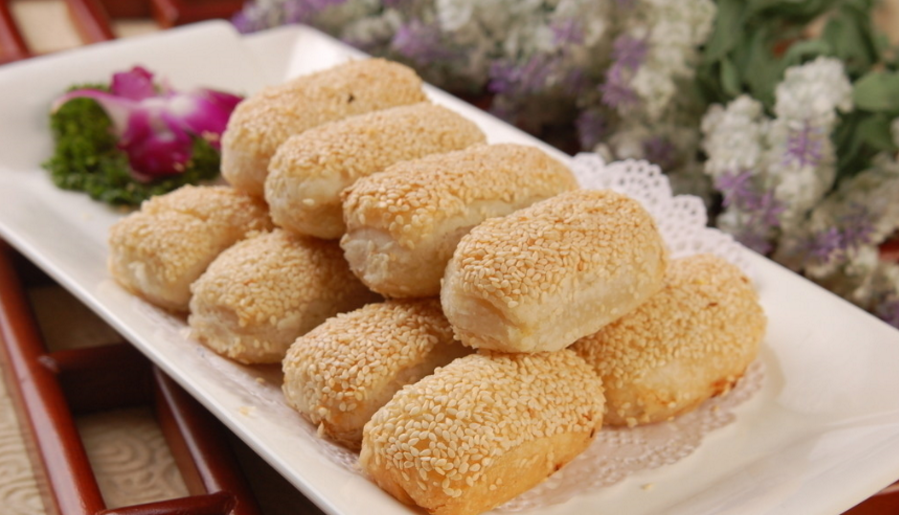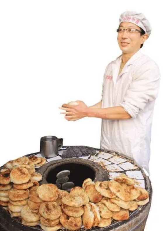 《续汉书》载,灵帝好胡饼。这大概是烧饼这一美食在中国较早的文字记载。经各地不断改进,经过烘烤、芝麻助香的烧饼深受喜爱,成为中华大地经久不衰的美味。清袁枚《随园食单》也说:把松子仁、胡桃仁敲碎,加冰糖屑、脂油和而炙之。 一方水土养一方美食。黄桥一带自宋就“麦谷酿酒、酒糟喂猪、猪粪垩田”,加之土质与气候的因素,成就了烧饼所用面粉、芝麻、食用油等主要地产原料的品质,制作的烧饼自然带有黄桥烙印的色正味香、酥脆可口。