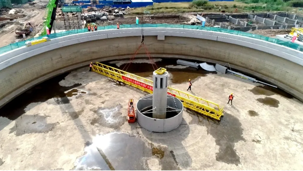 10月18日上午10点,伴随着各类工程机械轰鸣声,泰兴污水处理PPP项目二沉池B池刮泥机大型设备安装节点仪式正式启动,标志着整个项目的建设进入一个新的阶段。
