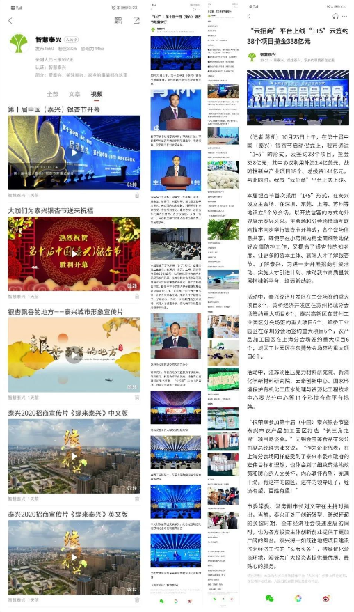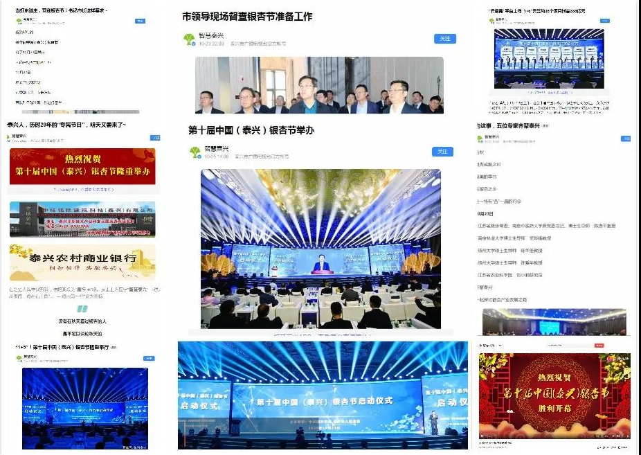 据不完全统计,连续5天省级、央视各平台围绕中国(泰兴)银杏节、泰兴形象宣传片等内容,陆续报道近30条(次),通过图文、视频等多种形式,展示了泰兴城市形象和发展成就。
