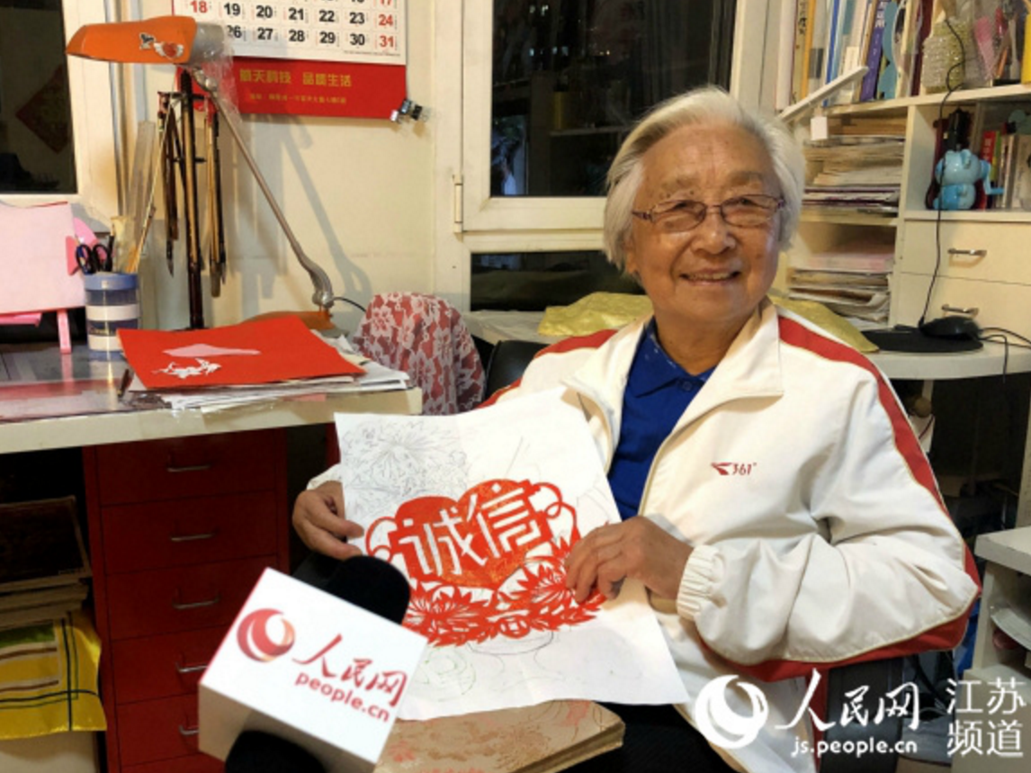 吴融芳老人创作的剪纸作品《诚信》 记者王新年摄 南京市建邺区中胜社区的吴融芳老人今年88岁,29日晚上早早便守在了电视机前。“五中全会公报中多次提到脱贫工作,我非常感动。”吴融芳告诉记者,从前年开始,她连续三年前往云南、贵州等地,为的就是实地看看我国的脱贫成果,“小时候都说那里‘天无三日晴,地无三尺平,人无三分银’,发展落后。现在再去看,我非常激动,公路修到了家门口,高铁在大山里穿行……”除了脱贫成绩单,“十三五”期间,国民素质和社会文明程度达到新高度,吴融芳为此专门创作了剪纸作品,“大家诚信度越来越高,我们的社会才会发展得越来越好!” 展望“十四五” 撸起袖子加油干