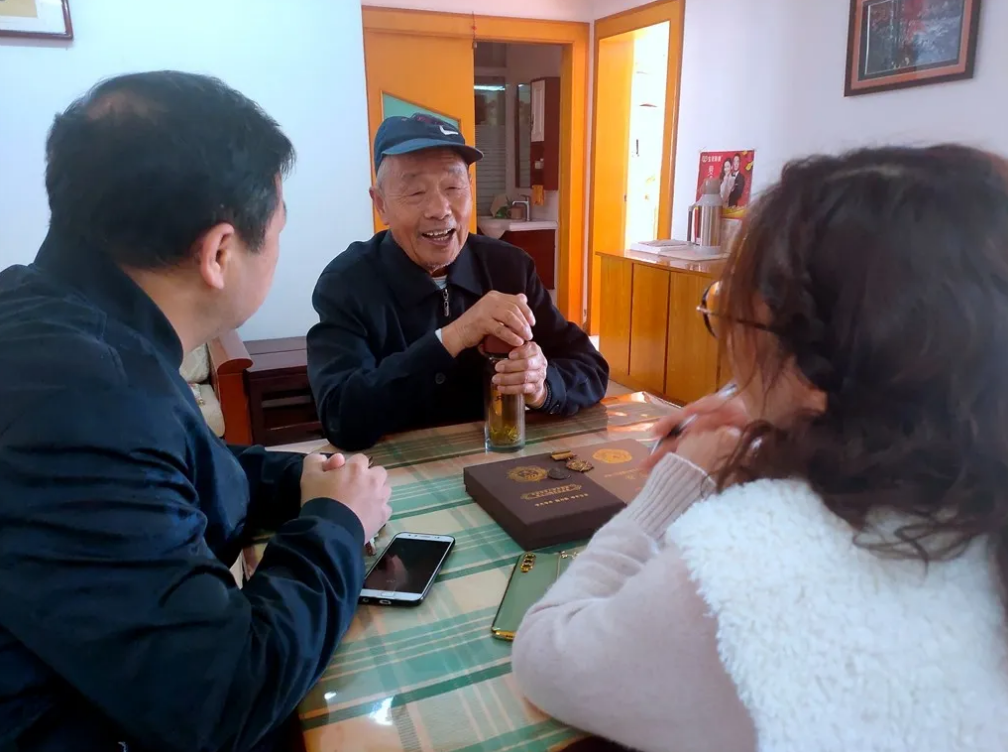 高保俊 ,91岁,原七圩四仙丁马村人,1948年8月参军,经历渡江战役、抗美援朝战役。虽是鲐背之年,却精神矍铄,讲话条理清晰、笑声爽朗,乐观的精神瞬间感染每个在场的人。
