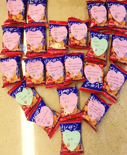 为感谢医护工作者的救命之恩,有患者送锦旗的,有患者送鲜花的,也有患者送感谢信的……但在泰兴市人民医院内分泌科,竟然有患者家属把祝福语写在每个饼干袋上来表达感谢之情,这还是第一次听说。 21个小饼干外包装袋上,贴有21个心形的彩色标签,写着21句温暖的感谢话语。