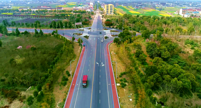 近年来,泰兴市宣堡镇科学布局交通路网,加快推进高品质“四好农村路”建设,做好“公路+”的文章。截至目前,已完成 “四好农村路”改造78.9公里,其中,铺就通村“彩虹路”’22公里,有效提升了通行能力和服务水平,农村公路与特色产业、文化旅游、美丽乡村建设、精准扶贫的融合发展更加紧密,一条条风景如画的乡村公路不仅不仅成了“网红路”,串起了美丽乡愁,也让乡村振兴的梦想照进现实。 以路兴产业,打通特色产业发展“快车道” 驱车行驶在通往江苏绿冶苗木科技有限公司宣堡苗场的乡村道路上,一路平坦畅通,两侧的苗木花卉基地层林尽染,生机盎然。“我们公司这次要销往徐州大规格香樟60株、实生银杏树150株、紫薇 200株,有了通畅快捷的道路,现在方便多了,也减少了运输和人工成本。”苗场基地的负责人秦成浩欣喜地说。 宣堡苗场是宣堡镇招引的国内知名综合性园林企业——苏州园林股份发展有限公司在镇上投建的一家苗木企业,共租赁宣堡村、崇头庄村1200多亩土地发展苗木基地。过去,受制于乡村道路狭窄,交通不便,出苗时往往要装卸、转运多次,花了不少“冤枉钱”。2018年宣堡镇上争实施县道X302线宣蒋线宣堡段改造升级,路道改为双向四车道,摊铺彩色沥青路面,安装路灯226盏,完善了排水设施。“这条按城市次干路技术标准设计的乡村公路,是泰兴首条彩色沥青路道,也成了打通宣堡苗木产业发展的‘快车道’。”宣堡镇分管农村公路建设工作的副镇长褚鹏介绍说。