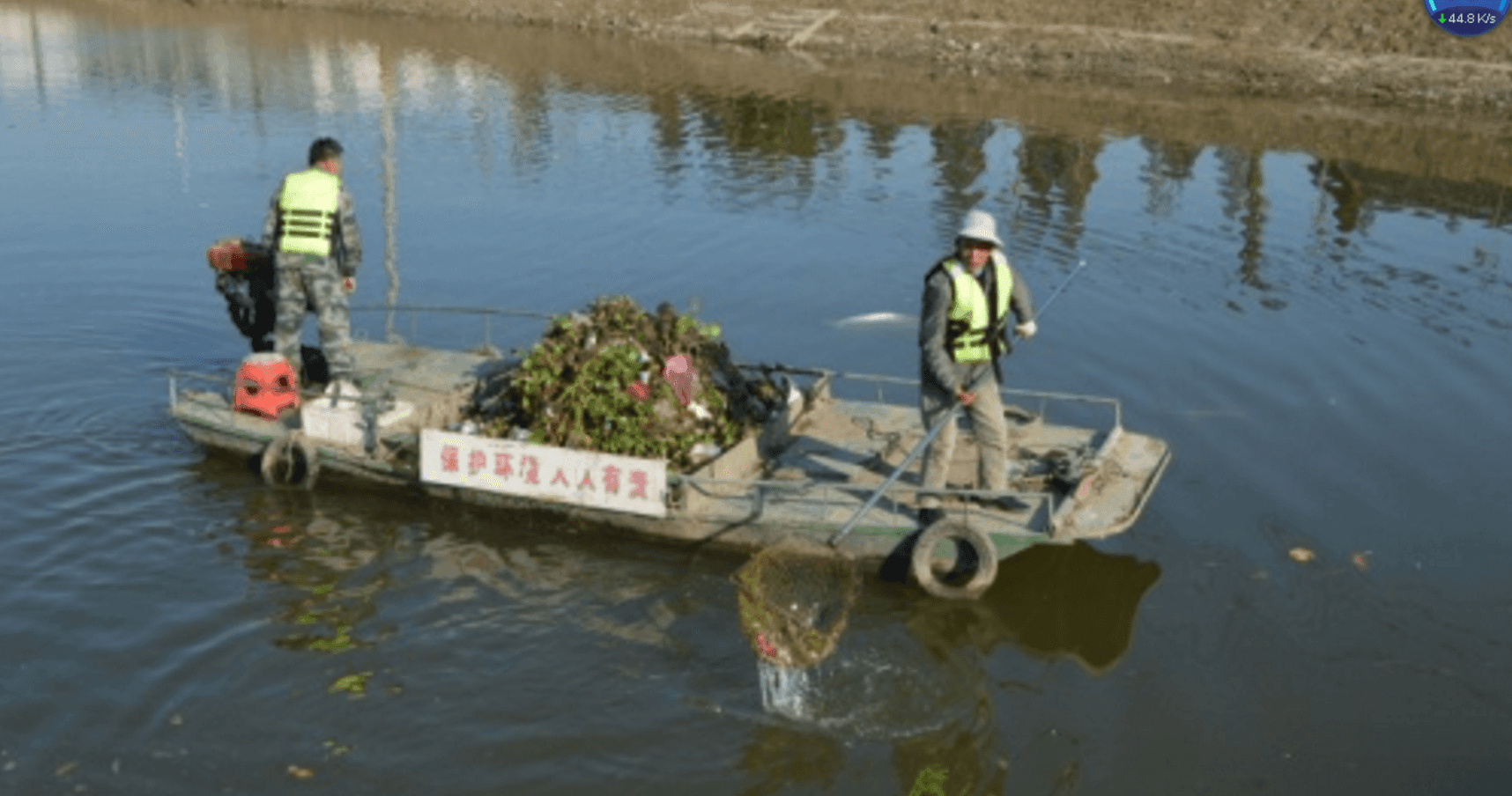 11月12日,江苏泰兴虹桥镇境内的七圩港沿线各村河长、河段长快速集结,集中打捞农作物秸秆等河面漂浮物。七圩村开动专用打捞船舶,并组织长效管护人员对辖区水面河坡逐段巡查清理,不放过任何“蛛丝马迹”。