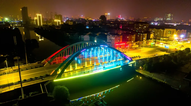 如泰运河静静流淌,站在桥上抬眼看两岸灯火辉煌,桥上的风景、桥下的行人,构成了一幅诗意的画卷,爱上运河上的桥、爱上运河边的这座城。