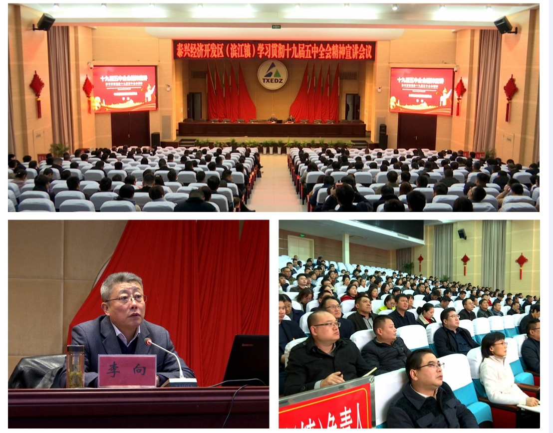 根据泰州市委统一安排,泰州市委宣讲团先后在泰兴经济开发区(滨江镇)、新街镇、黄桥镇、元竹镇等乡镇(园区)举行了学习贯彻党的十九届五中全会精神报告会。 泰州市委宣讲团成员、泰州市委政法委常务副书记李向,围绕“新发展”理念,作了深入系统的阐述和辅导。“作为基层党组织,我们将深入学习全会精神,吃透精神实质,领会丰富内涵,结合村居‘十四五’发展规划编制,把为群众谋福利、办实事、做好事作为我们的目标追求,落到实处。”滨江镇洋思村党总支书记戴印琴表示。“将始终怀揣一颗亲民的热心、为民的决心、富民的信心和不渝的恒心,服务企业、服务项目。”泰兴经济开发区投资促进部副部长姚恒华说。