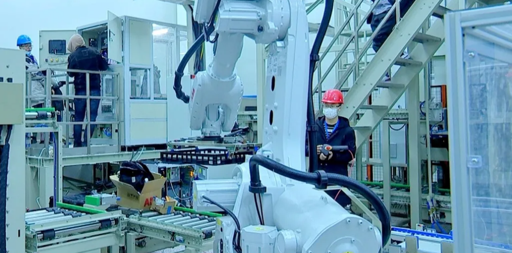 在黄桥经济开发区,长虹三杰三期锂电池扩产项目的化成车间,技术人员对智能生产线进行安装调试。项目投产达效后,可新增年产2.7亿安时的产能,以及300万套1.3亿安时电池模组的生产能力。