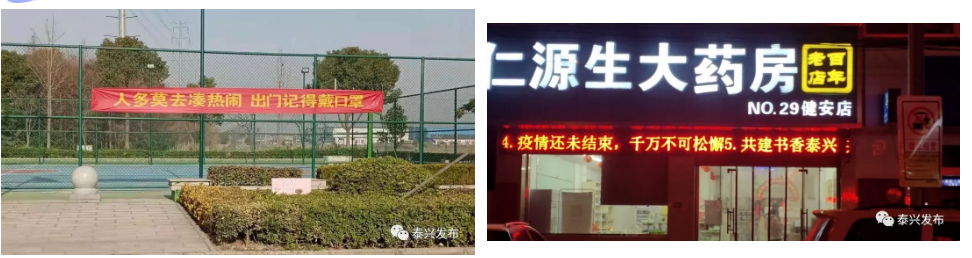 强化宣传引导,构建科学防控体系。“四支队伍”充分发挥各自专职监管员职能,多渠道、全方位加强宣传引导工作。镇疫情防控指挥部及时推送最新疫情防控要求和工作指引;村居利用喇叭广播定时播放《疫情防控“十项注意”》,在村主干道张贴各类宣传标语,组织村干部、中心户长劝导村民减少人员聚集;企业、学校、商场超市等各类人员密集场所,设置佩戴口罩、苏康码查验等标识,利用led显示屏、宣传栏等及时发布疫情防控最新要求。