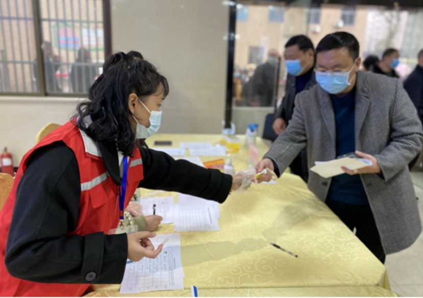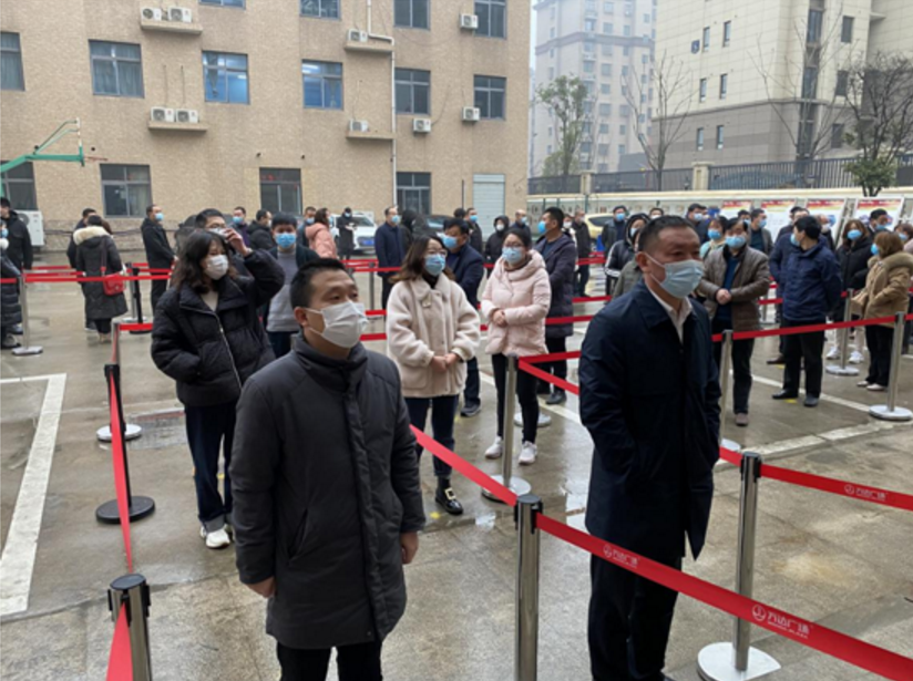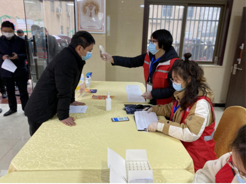1月27日下午,泰兴市济川街道跃进社区门口,几十号人排起了长队。