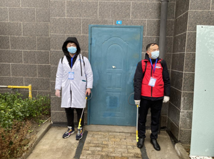 ●消杀组对该病例所住房屋进行全覆盖消杀,对楼栋内全部空间尤其是电梯、公共楼道、把手进行不留死角的消毒;