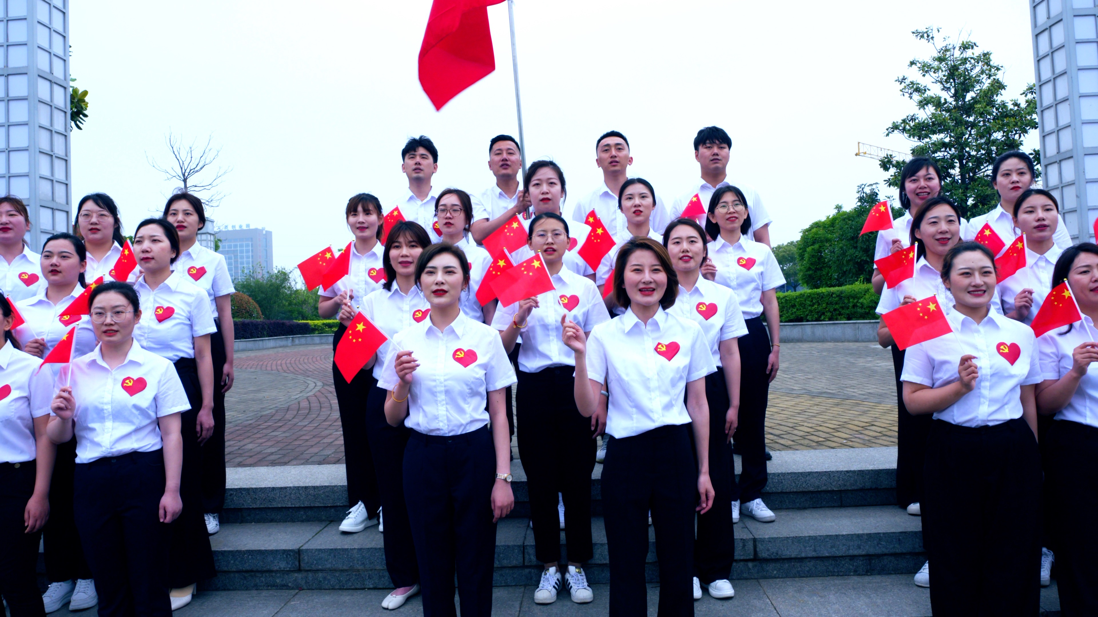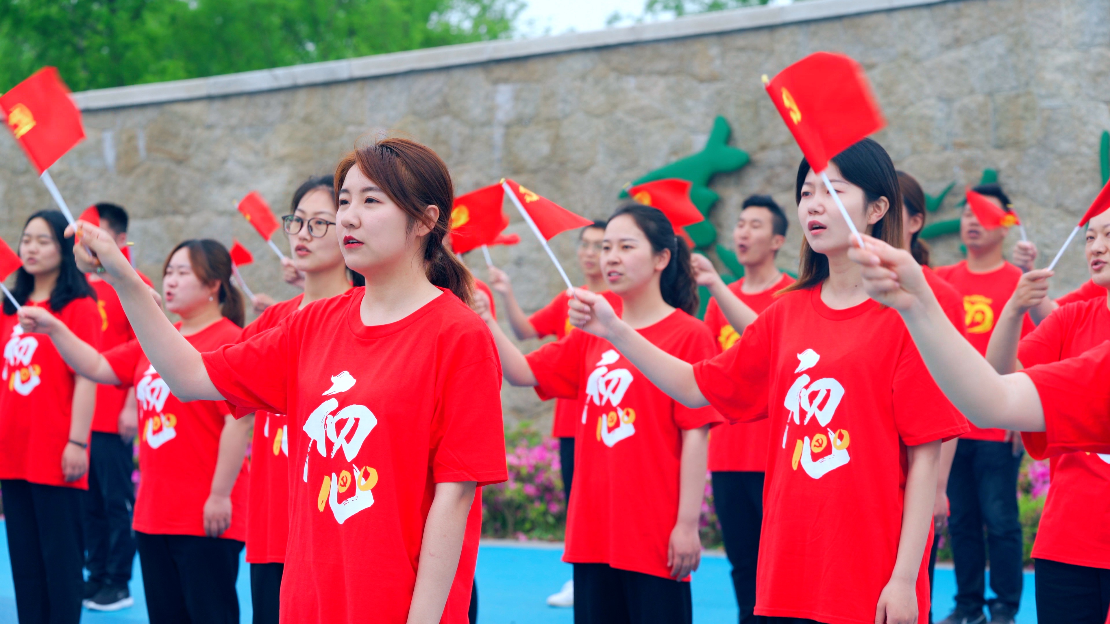 “没有共产党就没有新中国,没有共产党就没有新中国,共产党辛劳为民族,共产党他一心救中国……”在“5·20表白日”这个美好的日子里,《没有共产党就没有新中国》《歌唱祖国》《社会主义好》等歌曲在江苏泰兴全城唱响。 在全市18个乡镇(街道)、开发园区的314家新时代文明实践所(站),2万余名党员干部群众手持党旗、深情演绎。宣堡镇新时代文明实践所的工作人员戴琳说:“在520这个特殊的日子里唱红歌大家都觉得特别有意义,我们想用歌声告诉祖国:我最爱您!”