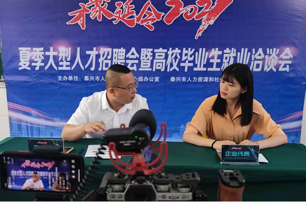 “大家好,欢迎来到招聘直播间。今天,为求职者提供的岗位包括行政经理、设计师、技术工人、销售……”7月26日,在泰兴市2021年夏季大型人才招聘会上,该市人社局通过抖音APP进行的“直播带岗”活动,成为此次招聘会的一大亮点。