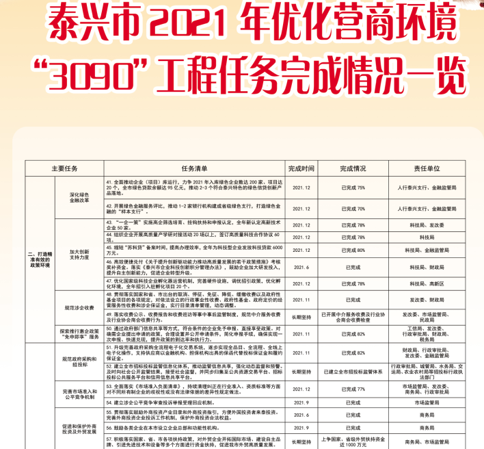 “一只设置在行车端部,向外突出近半米的橡皮圈,碰到障碍就会停,可以有效地防止行车伤人伤物。”近日,在泰兴工信部门的帮助下,一个困扰华泰船业多年的安全问题迎刃而解。 企业是社会发展不可或缺的力量,帮企亲商,纾危解困是不可推卸的责任。在“我为群众办实事”实践活动中,泰兴加快新旧动能转换,深入开展“三服务一优化” 实地走访活动,坚持问需于企,通过实地走访、个性化服务,助融资、强创新、提安全,切实为企业办实事、解难题。 “帮”到点子上,“助”到关键处。在今年疫情防控中,1000多名驻厂员从机关下沉企业一线,排查疫情、调配物资、帮办通行证,与企业并肩同心抗疫。“今年,企业订单很多,但7月突然而来的新冠肺炎疫情却给企业经营带来很大影响,最大的问题就是车辆运输问题。”泰兴市苏荣制剂厂负责人樊苏湘说,那段时间,多亏了驻厂员协调帮忙,每天帮企业10辆运输车办理通行证,保证了企业正常运行。 为了更好地服务企业,年初,该市就将优化营商环境“3090”工程列为首批“我为群众办实事”项目,研究制定《优化营商环境30条》,细化形成90项任务清单,积极打造高效便利的政务环境、精准有效的政策环境。 该市发改委将90项任务逐一细化分解形成专项工作方案,并明确了责任单位和完成时间。其中包括年底前实现开办企业2个工作日内办结常态化,专区套餐式办理0.5个工作日内办结;进一步压缩企业简易注销办理时限,缩短“苏科贷”备案时间,提高办理效率,全年为科技型企业发放科技贷款6000万元等。 针对中小企业发展短板,该市工信部门坚持问题导向,建立服务清单,引导和支持企业运用先进适用技术,以及新工艺、新设备、新材料,对生产设施、工艺条件及生产服务等进行改造提升。江苏兆胜科技股份有限公司在政府部门工作人员的指导下,实现了生产、检测中心设备快速“上云”管理,产品故障率由此降低60%,工作效率提升10%。