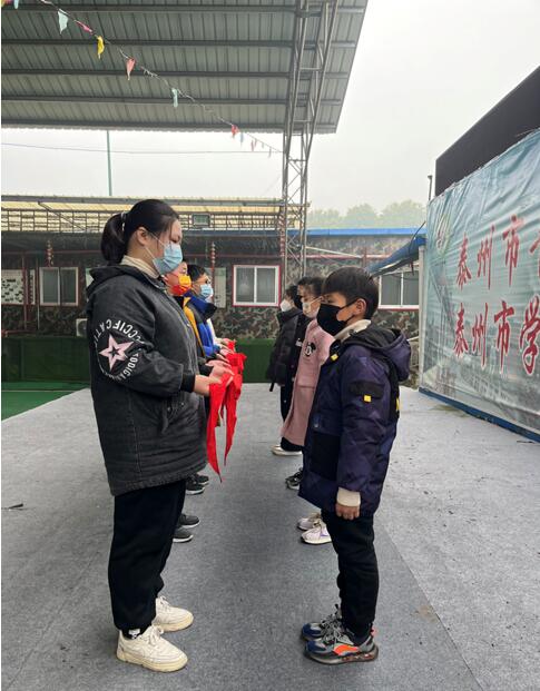 为进一步加强爱国主义教育,丰富青少年的业余生活,1月8日,黄桥镇组织青少年学生走进祁巷青少年综合实践基地。广场上,参与活动的高年级少先队员为新队员佩戴上鲜艳的红领巾。鲜艳的红领巾映红了孩子们的脸庞,新队员脸上洋溢着自豪的笑容。