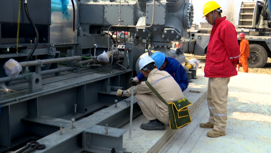 围绕实现国家“双碳”战略目标,全面落实绿色低碳发展战略,2021年开始,黄桥气田矿采处理厂实施迁建工程,整厂迁建至溪桥社区境内,建设内容包括提纯液化装置,配套CO₂储存、CO₂装车、凝液储存、尾气焚烧装置、仪表风系统等辅助设施。国内首个百万吨级CO₂调峰中心即将在黄桥建成投产。 近日,在黄桥气田矿采处理厂迁建工程压缩机厂房施工现场,工人们正加紧进行设备的组装,数台氟利昂制冷螺杆机和二氧化碳压缩机已进入组装阶段。据了解,压缩机厂房投资1000万元,是整个二氧化碳提纯及注入装置的核心部分,主要起到压缩和制冷功能。