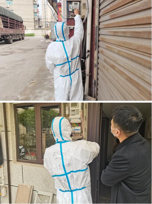 泰兴公司运维检修部工作人员配备防护服、防护面罩等防疫物资装备,进入疫情管控区开展抢修工作,保障电力供应可靠安全。