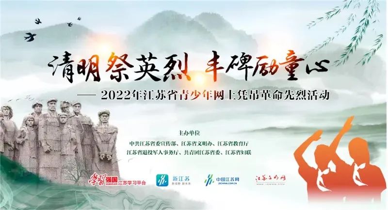 为深化青少年理想信念教育,省委宣传部、省文明办、省教育厅、省退役军人事务厅、团省委、省妇联定举办2022年江苏省青少年网上凭吊革命先烈活动。请同学们积极行动起来,参加“为英烈献花”、“我要留言”等云端活动,用科学、文明的方式缅怀革命先烈、赓续红色基因、立志成才报国。