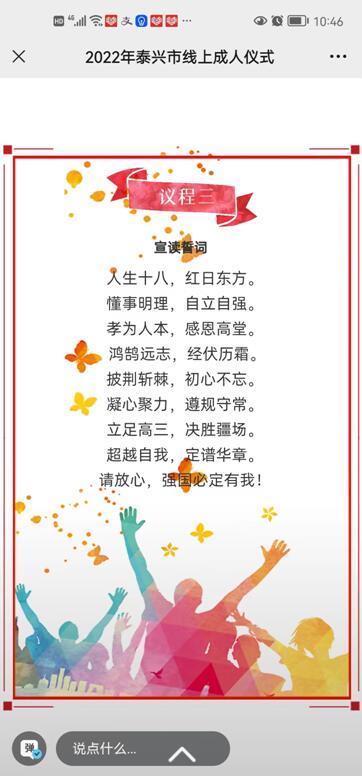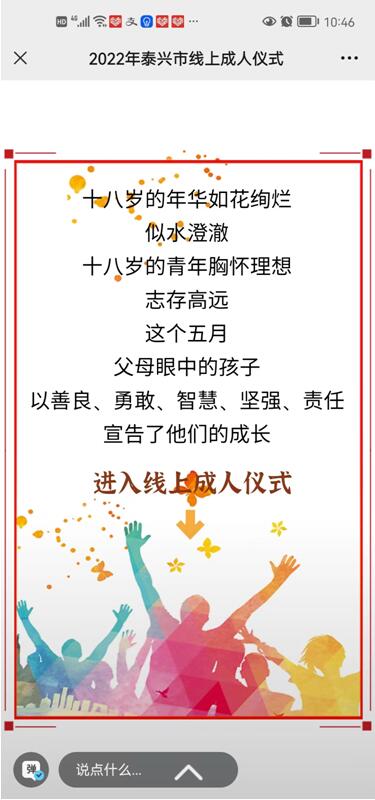 (手机扫码参与“2022年泰兴市线上成人礼”) |